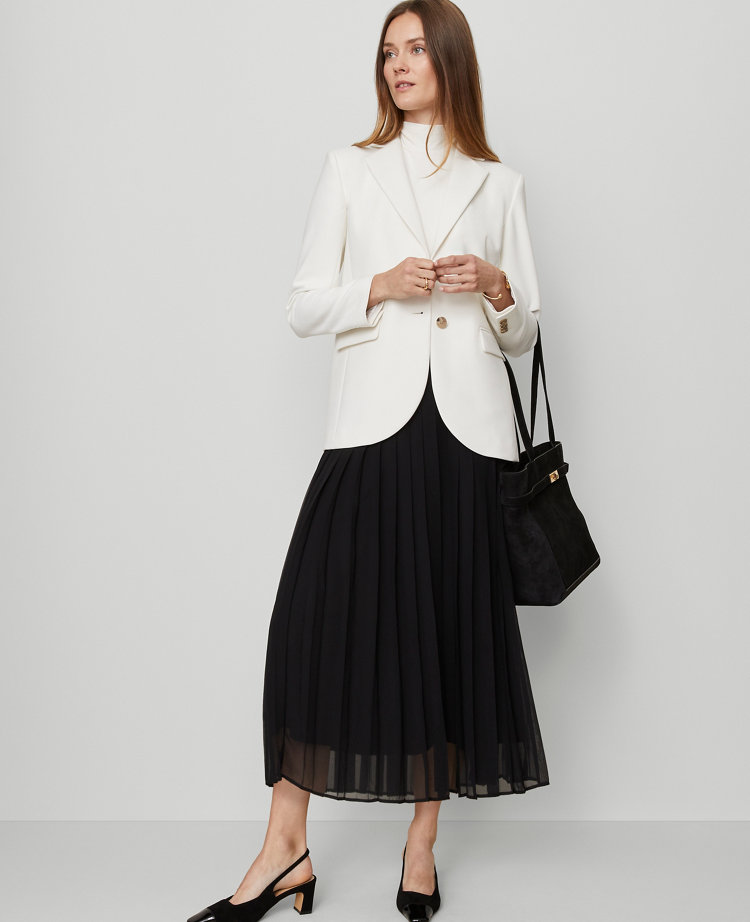 Sharp pleats give this fluid maxi skirt beautiful texture and movement. Hidden back zipper with hook-and-eye closure. Lined.