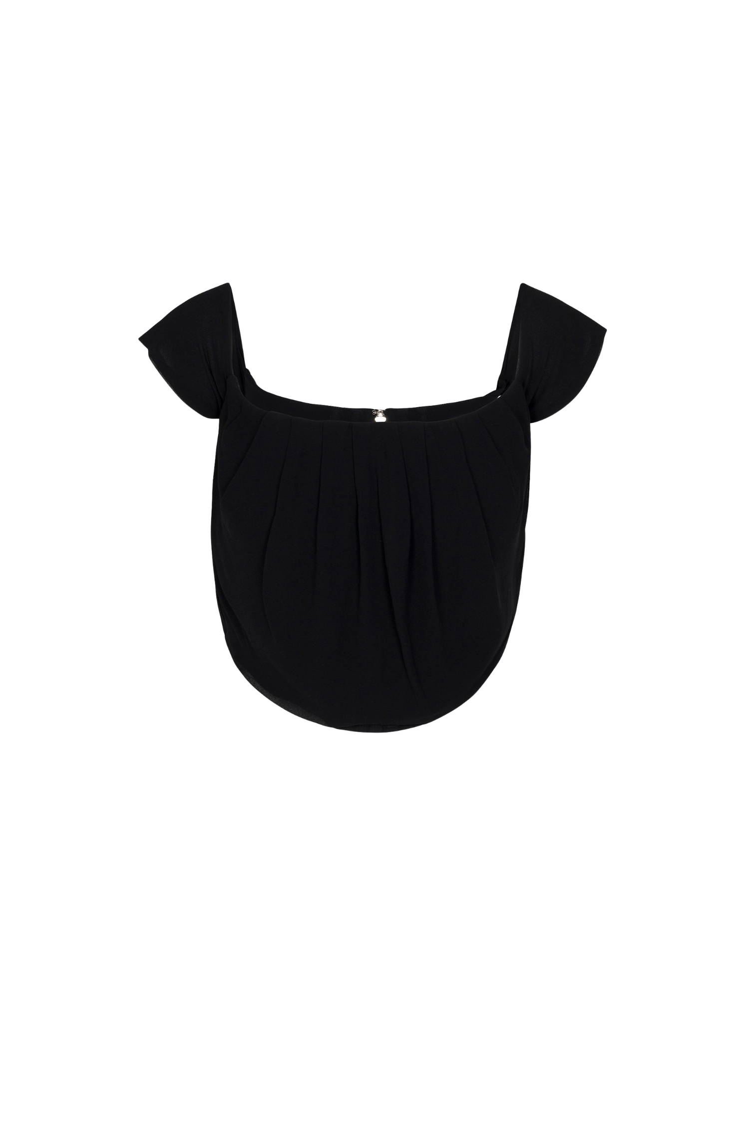 By popular demand we’ve brought back an OG. the Cleo Corset. in black georgette. She’s an off shoulder. cropped number with a back zipper and fitted bodice. Perfect for a night out. Pair with our sexy. sheer Rue Skirt.