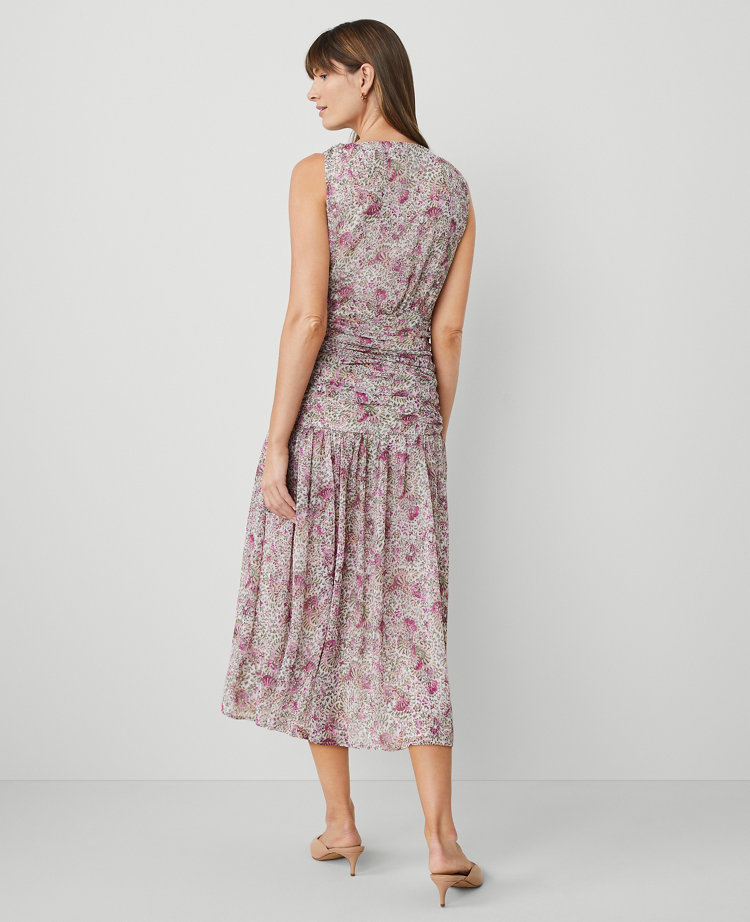 With an hourglass-enhancing ruched waist and fluttering split skirt, this chiffon flare dress is sure to make an entrance. V-neck. Sleeveless. Ties at side waist. Hidden side-zip closure. Side slit. Lined.