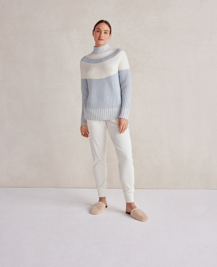 Haven Well Within. A thoughtful collection of lounge, sleep, home, and lifestyle essentials — and your trusted resource for all things wellbeing. Wonderfully wintery and soul soothing. This soft, cashmere sweater features a polished mock neck and a cozy, chunky knit. Contrasting, yet complementary, hues mix and mingle to create a truly timeless statement piece. Long sleeves.