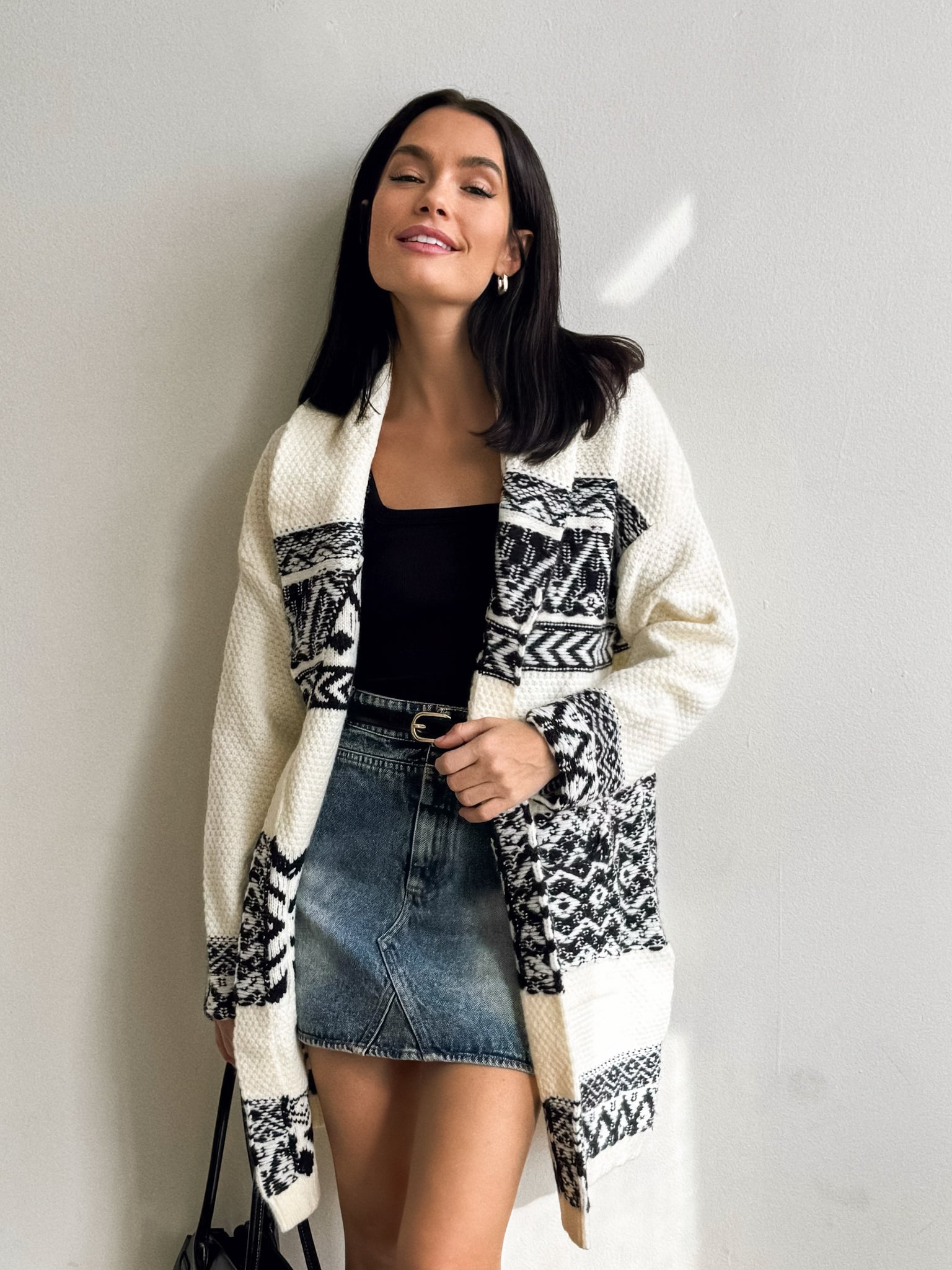 Winter season just got even better with our NEW Heritage Nordic Knit Cardigan! Pair this cardigan with a basic long sleeve. black leggings. and boots for a cozy yet elevated look! Accessorize with gold jewelry and a black hobo bag.