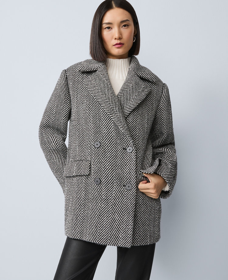Herringbone Double Breasted Peacoat