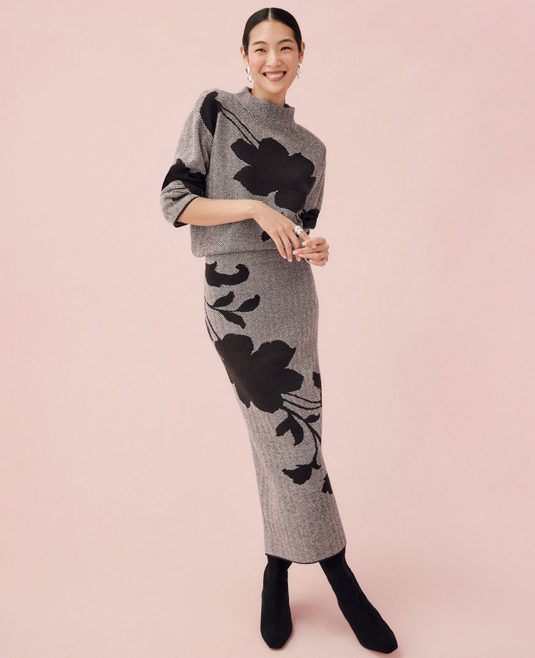 Herringbone Floral Jacquard Sweater Skirt
