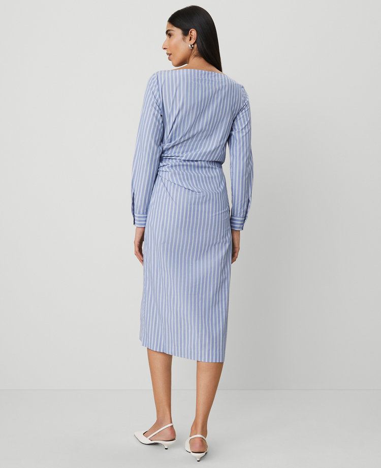We’ve reinvented the timeless shirtdress in the form of this beautifully sculpted style, shaped with artful angles. V-neck. Dropped shoulders. Long blouson sleeves with button cuffs. Front-button placket trim. Hidden side-zip closure.
