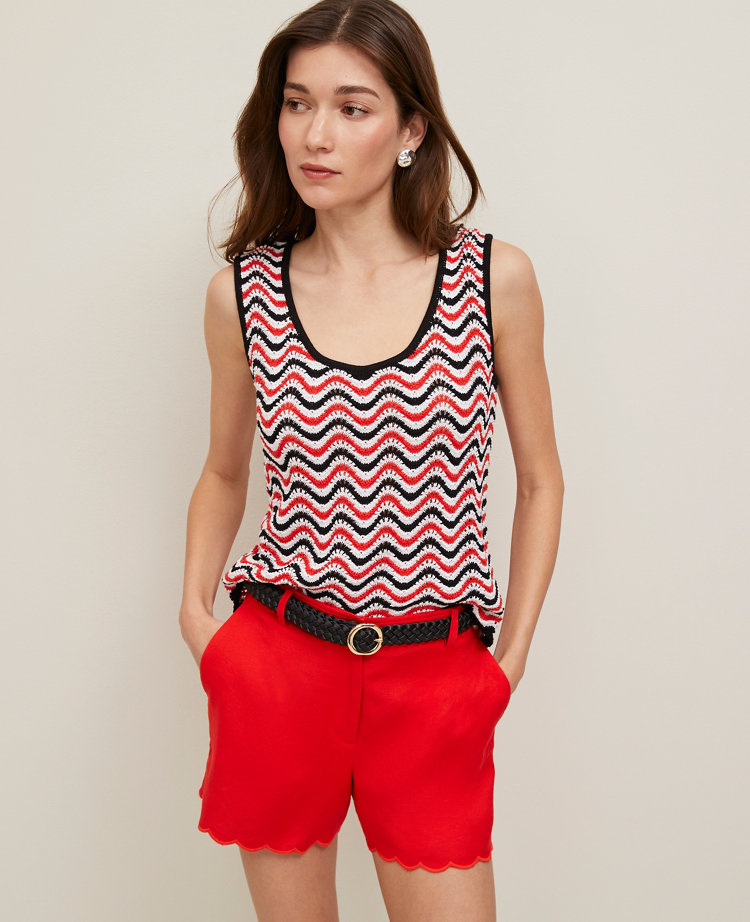 Petite Striped Crochet Sweater Shell