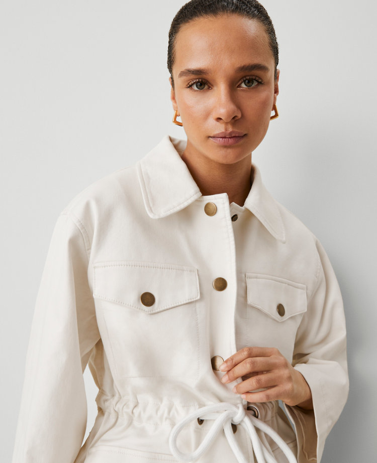 Discover Ann Taylor Weekend. Effortlessly polished pieces for wherever your plans take you. Face any type of weather in style with this poncho-inspired parka, perfected by a flattering drawstring waist. Point collar with hood. Front snap closures. Dropped shoulders. Long wide sleeves. Four front snap flap patch pockets. Drawstring waist. Lined.