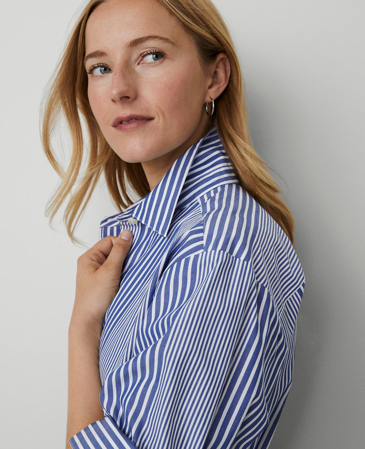 Discover Ann Taylor Weekend. Effortlessly polished pieces for wherever your plans take you. Ease into impeccable style with this minimalist shirtdress, a flowing-yet-tailored silhouette nipped at the waist. Point collar. Front hidden button placket. Dropped shoulders. Long sleeves with button cuffs. Removable tie cord belt. Shirttail hem.