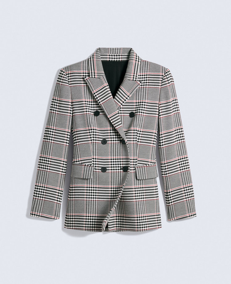 Impeccible tailoring at its best, this blazer boasts an elongated cut that’s extra sleek and streamlined. Peak lapels. Double breasted buttoned front. Long sleeves with button cuffs. Front flap besom pockets. Back vent. Lined.