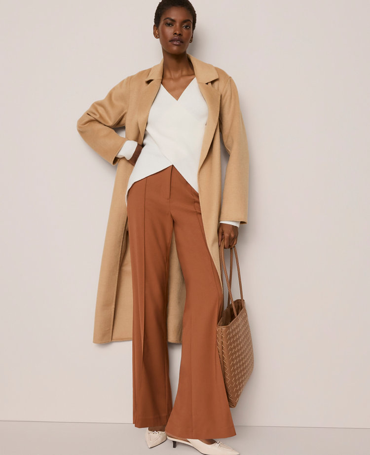 Get wrapped up in effortless modern chic — this cozy ribbed sweater has an artful crossover design that’s equally flattering and chic. V-neck. Dropped shoulders. Long blouson sleeves. Hi-low hem.