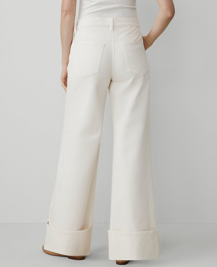 Our high-rise palazzo jeans are designed with sculpting pockets that smooth, flatter and hold your shape. Performance stretch denim sculpts, shapes and supports all day long. Front zip with a button closure. Belt loops. Classic five-pocket styling.