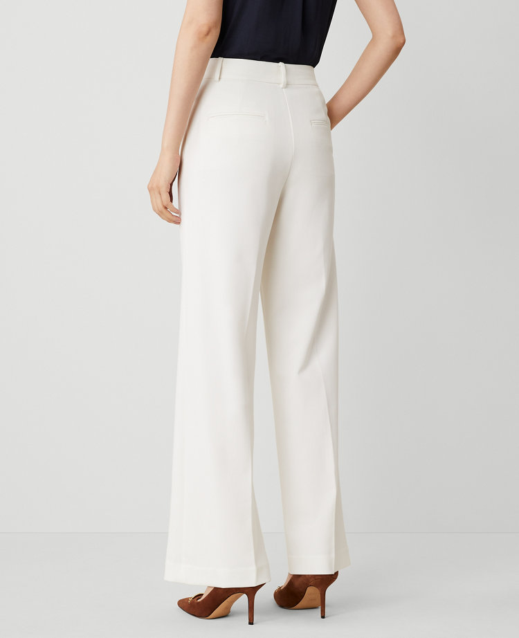 A modern must-have with a statement leg and flattering high waist. Front zip with button closure. Belt loops. Front off-seam pockets. Back besom pockets. Lined.