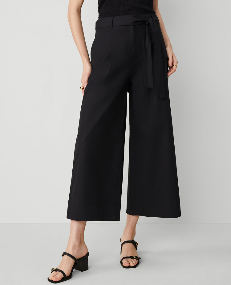 This flattering pant features an easy fit through the thigh and front pleats for extra ease of movement. Front zip with a hook-and-bar closure. Removable tie belt. Belt loops. Onseam pockets. Back welt pockets.