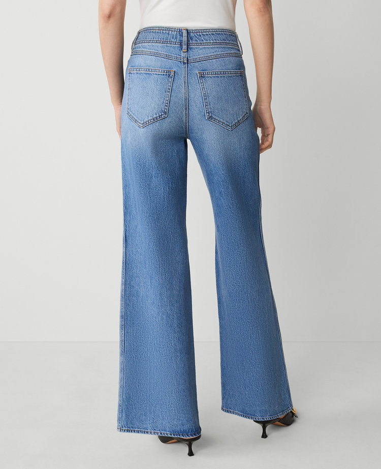 Our high-rise wide-leg jeans are designed with new pockets that smooth, flatter and hold your shape. Performance stretch denim sculpts, shapes and supports all day long. Front zip with a button closure. Belt loops. Slash pockets. Back patch pockets.