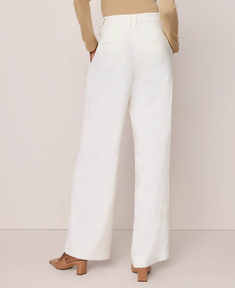 This flattering pant features an easy fit through the thigh and front pleats for extra ease of movement. Side buttoned closures. Belt loops. Front pleats. Front on-seam pockets. Back besom pockets. Lined.