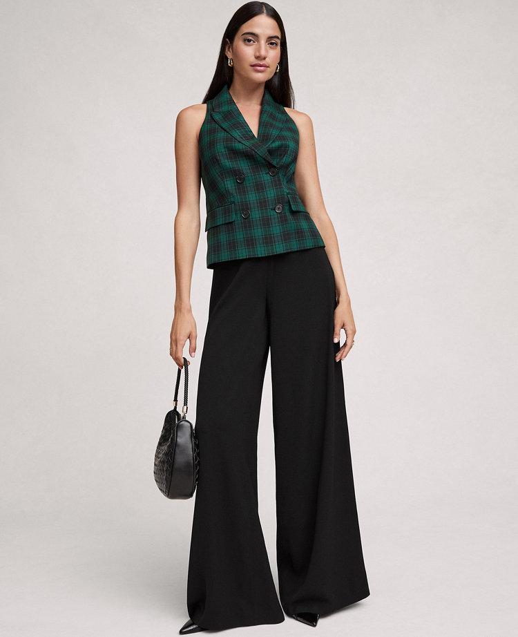 This flattering wide-leg palazzo pant features an easy fit through the thigh and a pleated leg for extra ease of movement. Hidden side zip.