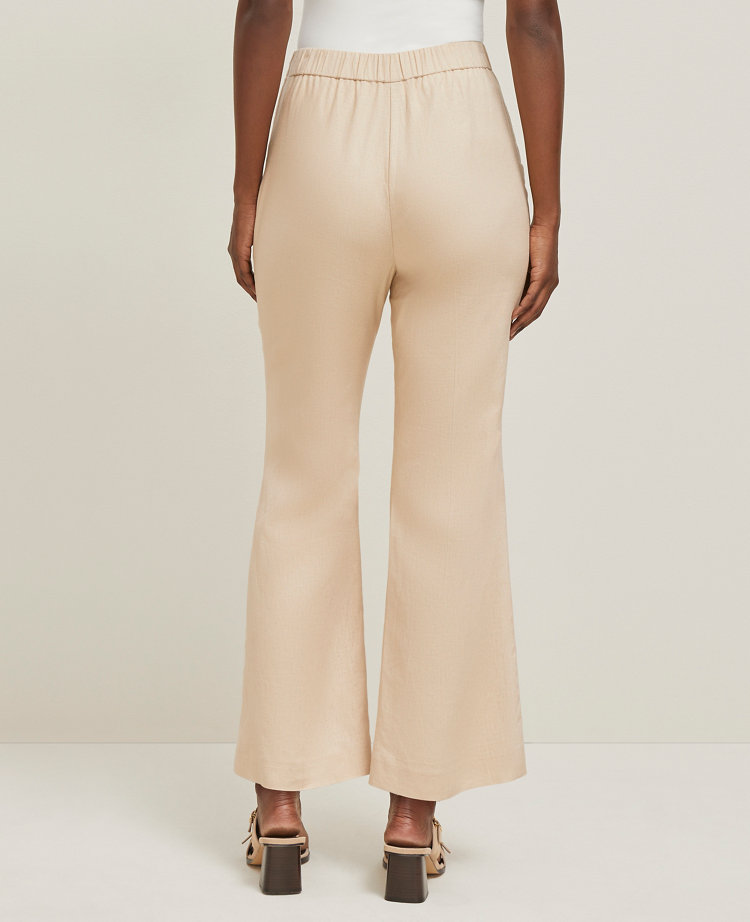 Our flare pant is a modern must-have with a perfect drape and high rise that endlessly flatters. Elasticized back waist. Side zip. Lined.