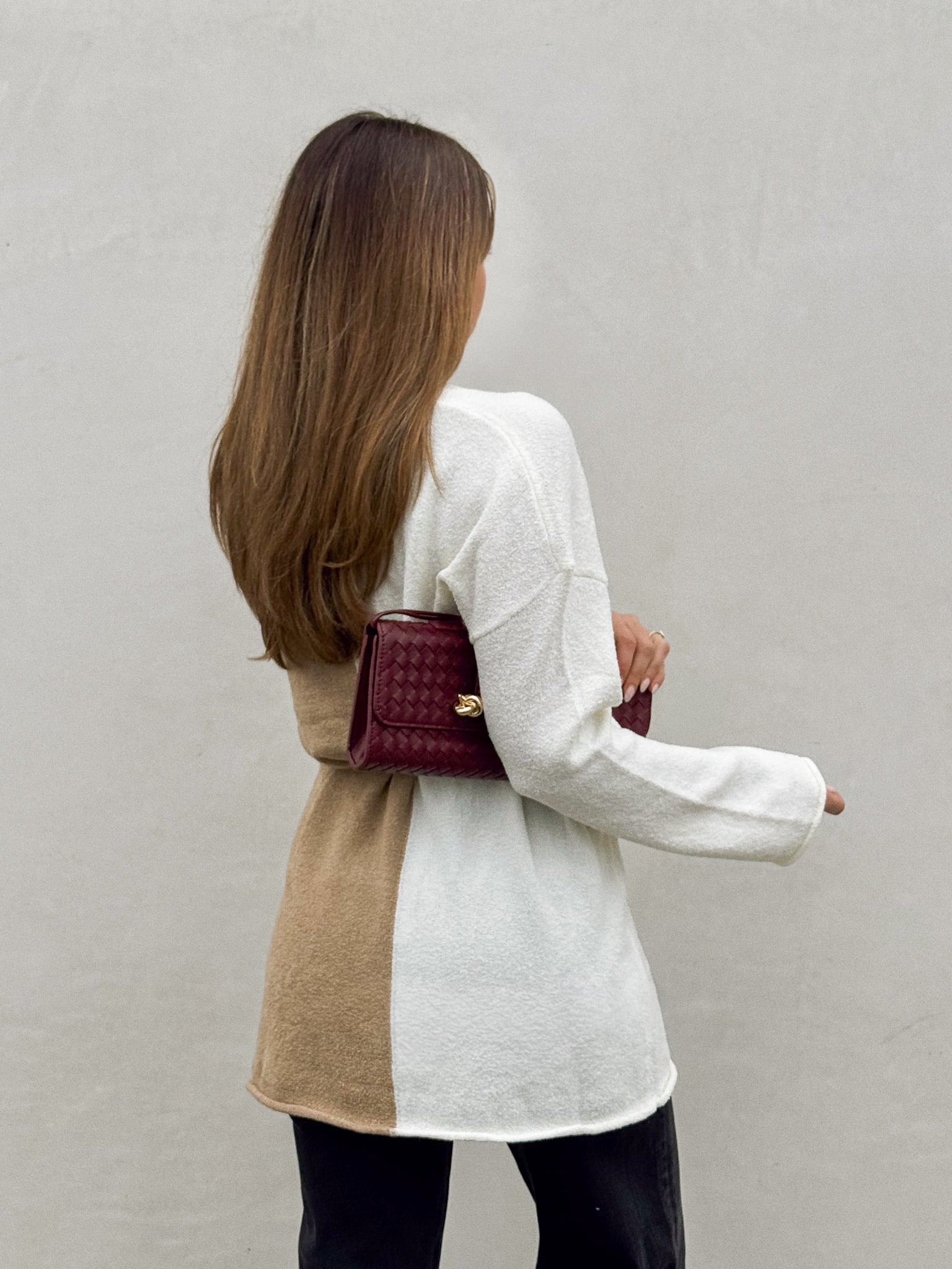 Our NEW Vanilla Cappuccino Knit Sweater is the perfect sweater to layer with your festive outfits this holiday season. Style this cardigan wrapped around a black mini dress and black boots to be best dressed at your next dinner party. Accessorize with gold jewelry and a red clutch to complete the look!