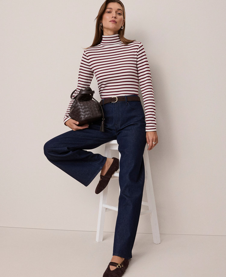 Weekend Collection Striped Turtleneck Top