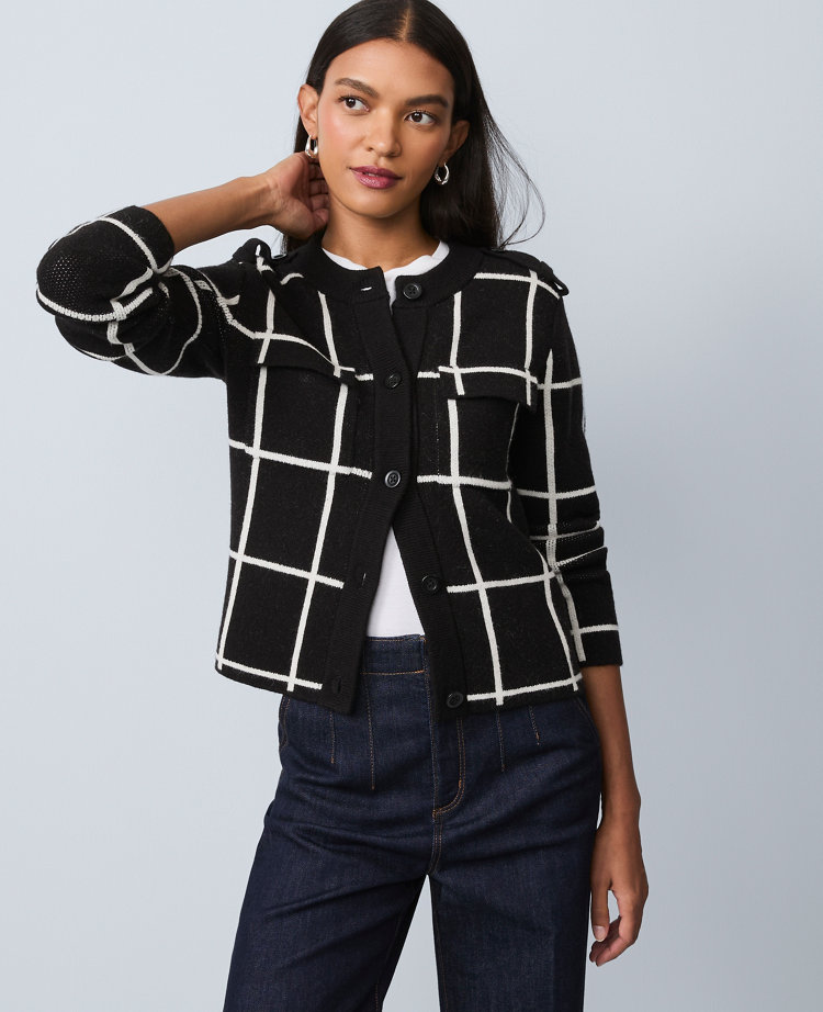 Windowpane Utility Sweater Jacket